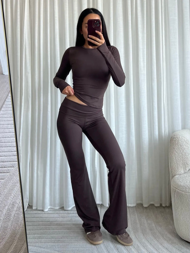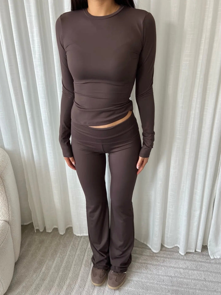 Stretchy Fold over Flared Pants ( inner length 84cm, size S )